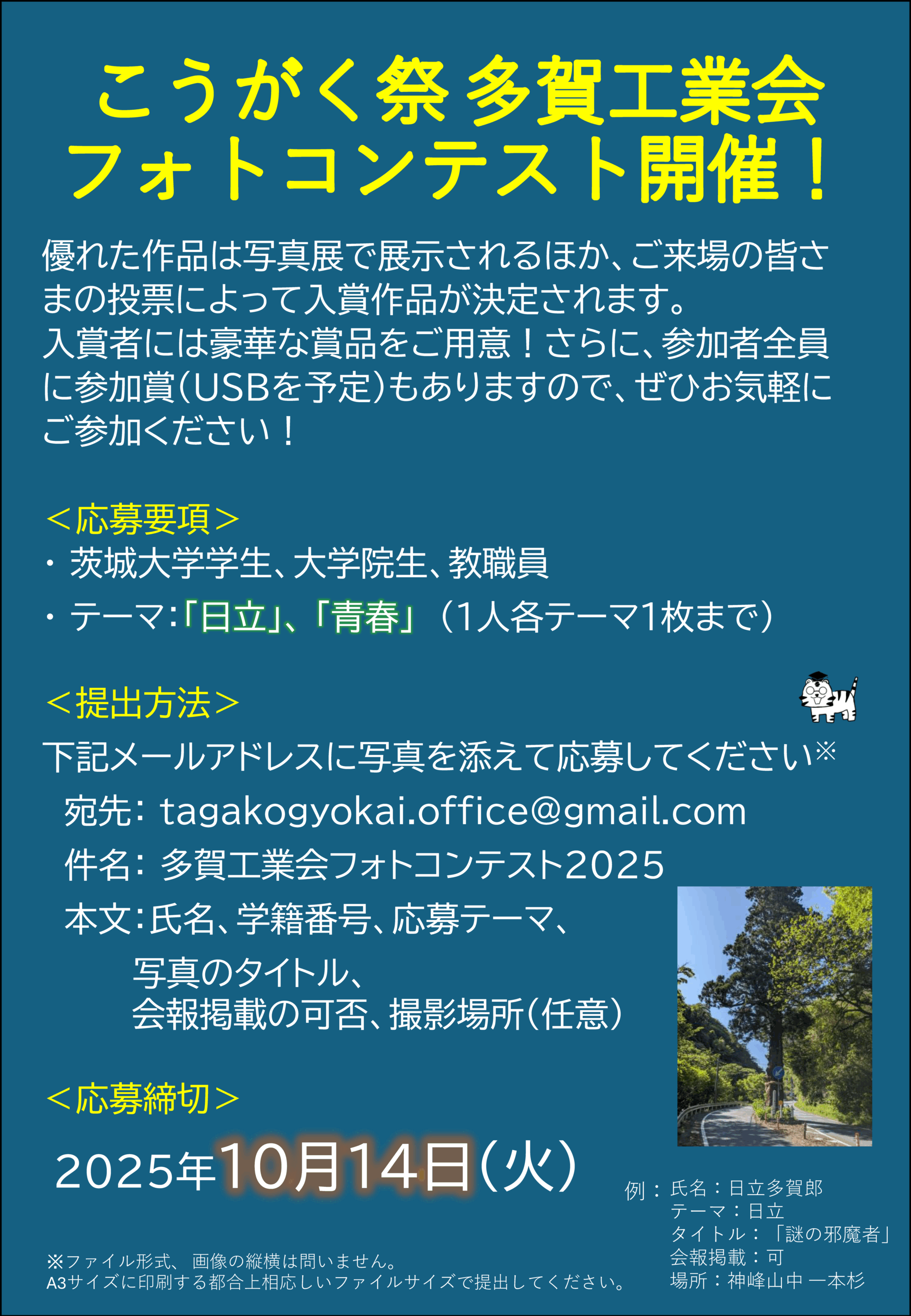 お知らせ多賀工業会では、こうがく祭でフォトコンテストを開催します。