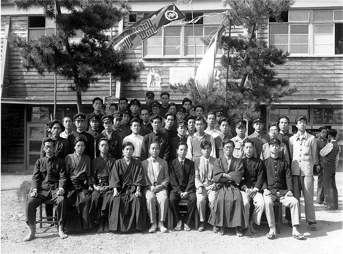 工専入学時、寮の上級生がむしろ旗を持って迎えに来てくれた。
